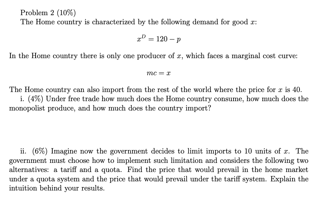 Solved Problem 2(10%) The Home country is characterized by | Chegg.com