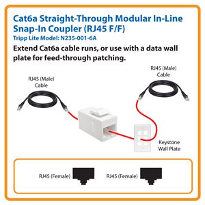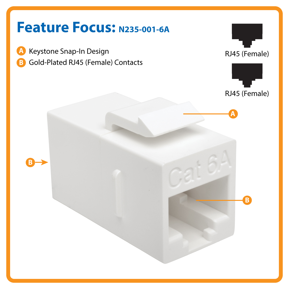 Tripp Lite Cat6a Straight Through Modular In Line Snap In Coupler RJ45 ...