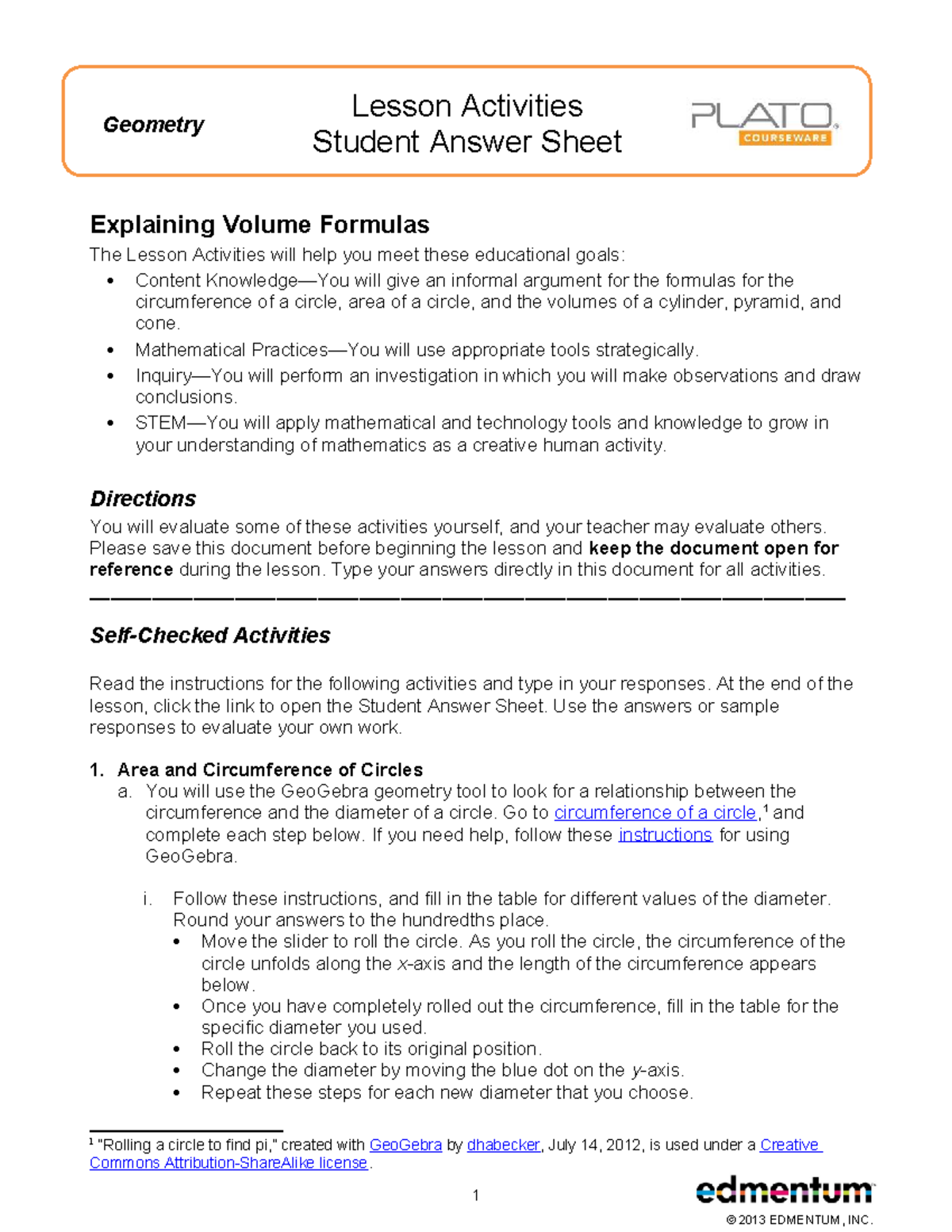 Geometry LAS: Explaining Volume Formulas & Activities - Studocu
