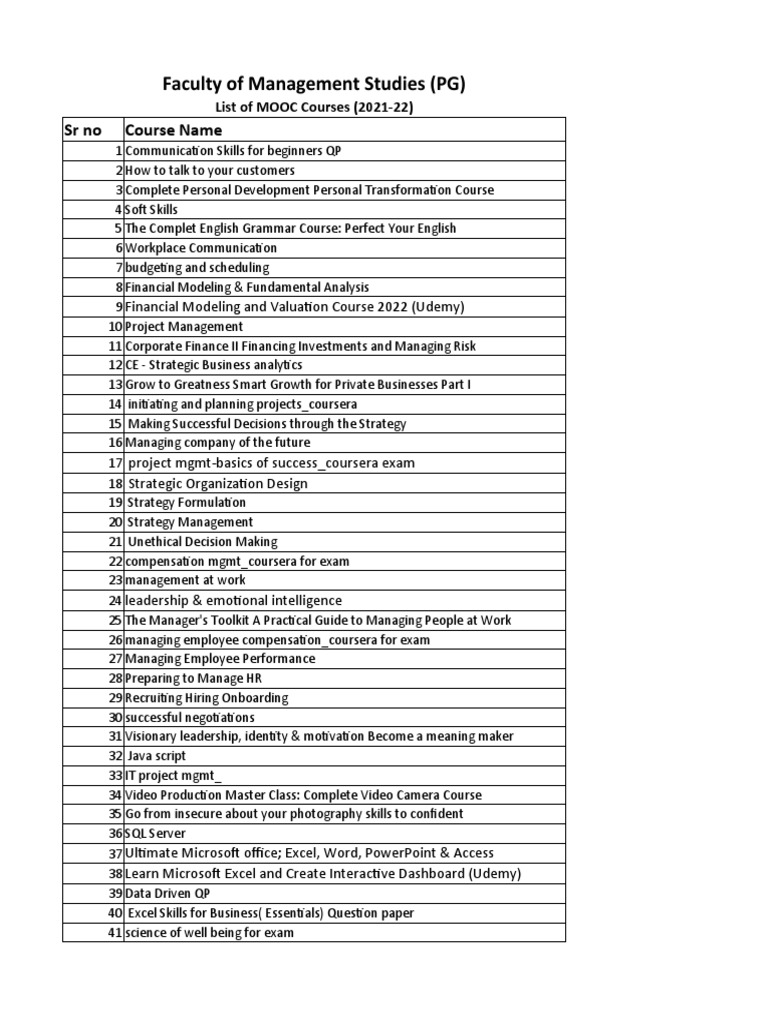 Suggested Course List List-MOOc Course | PDF | Analytics | Business