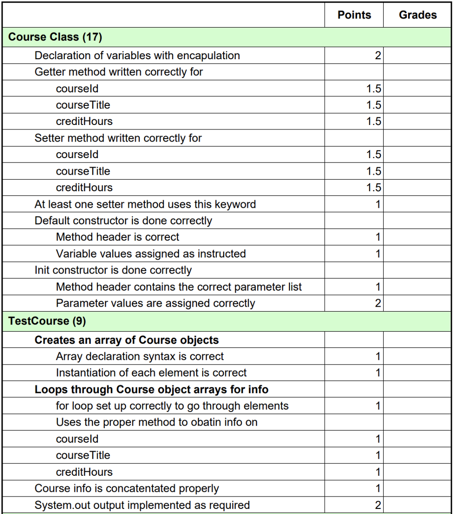Solved Define a new class called Course, with attributes as | Chegg.com