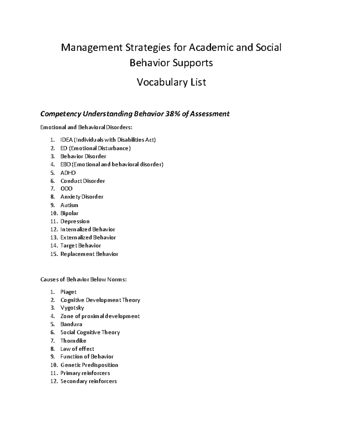 Behavioral Course Vocab New - Management Strategies for Academic and ...