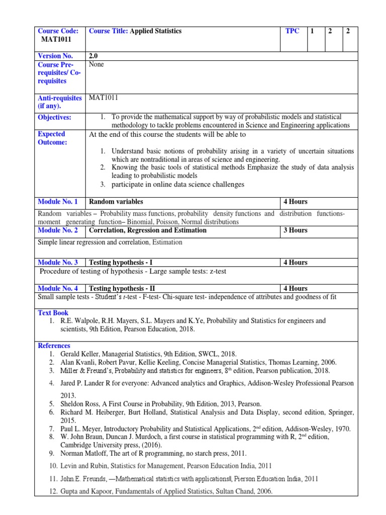 Syllabus TTL-Statistics - Course Name Probability and Statistics Course ...
