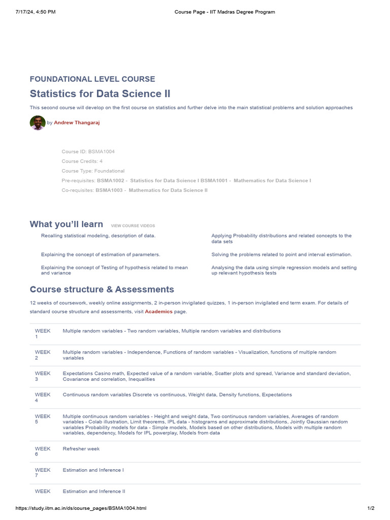 Foundation Course - Statistics For Data Science II | PDF | Statistics ...
