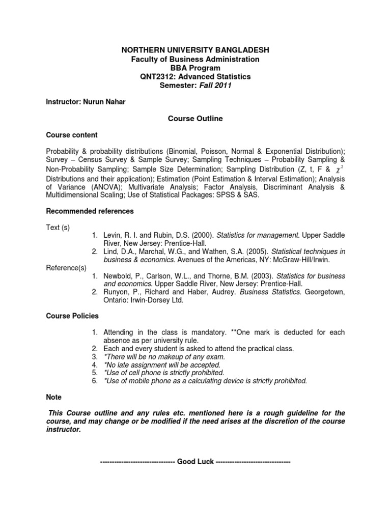 Advanced Statistics Course Outline | PDF