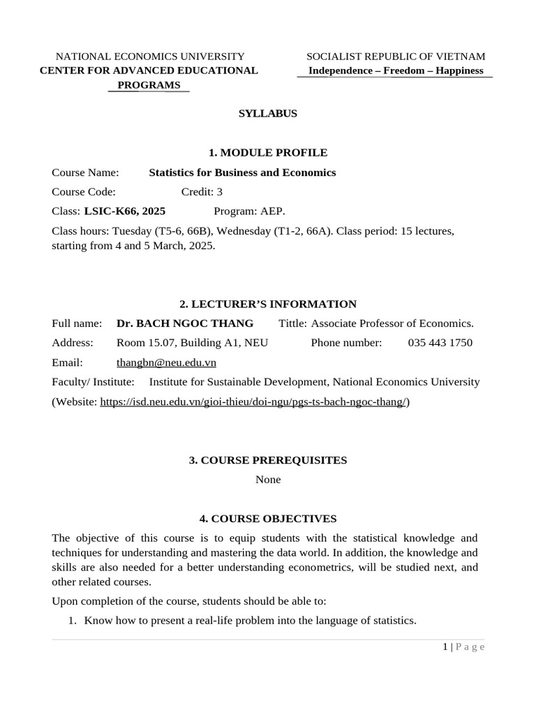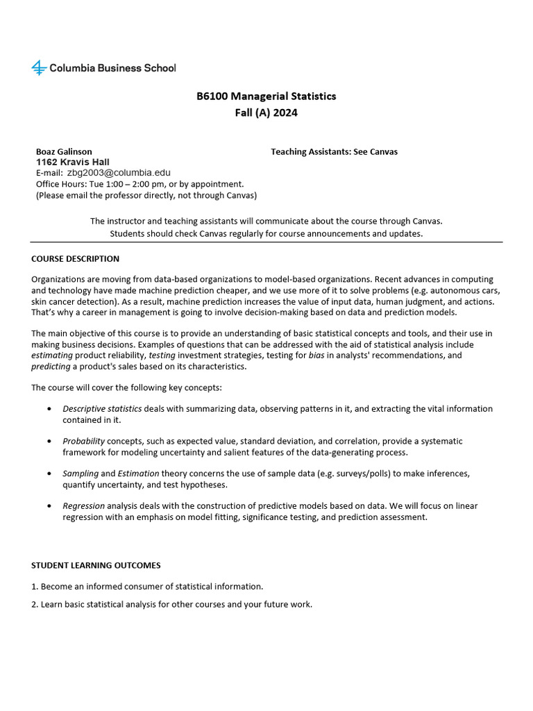 Course Syllabus - Biz Statistics - 20mar2025 - Updated | PDF ...