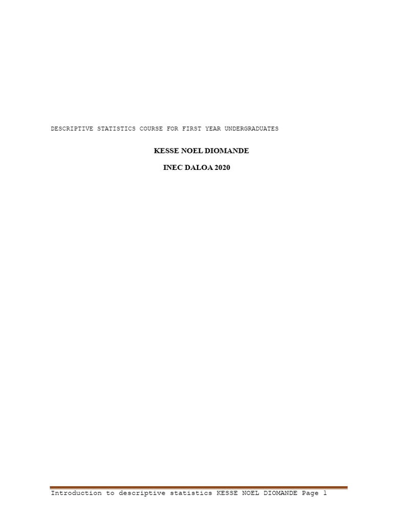 Course On Descriptive Statistics For First Year Undergraduates PDF ...