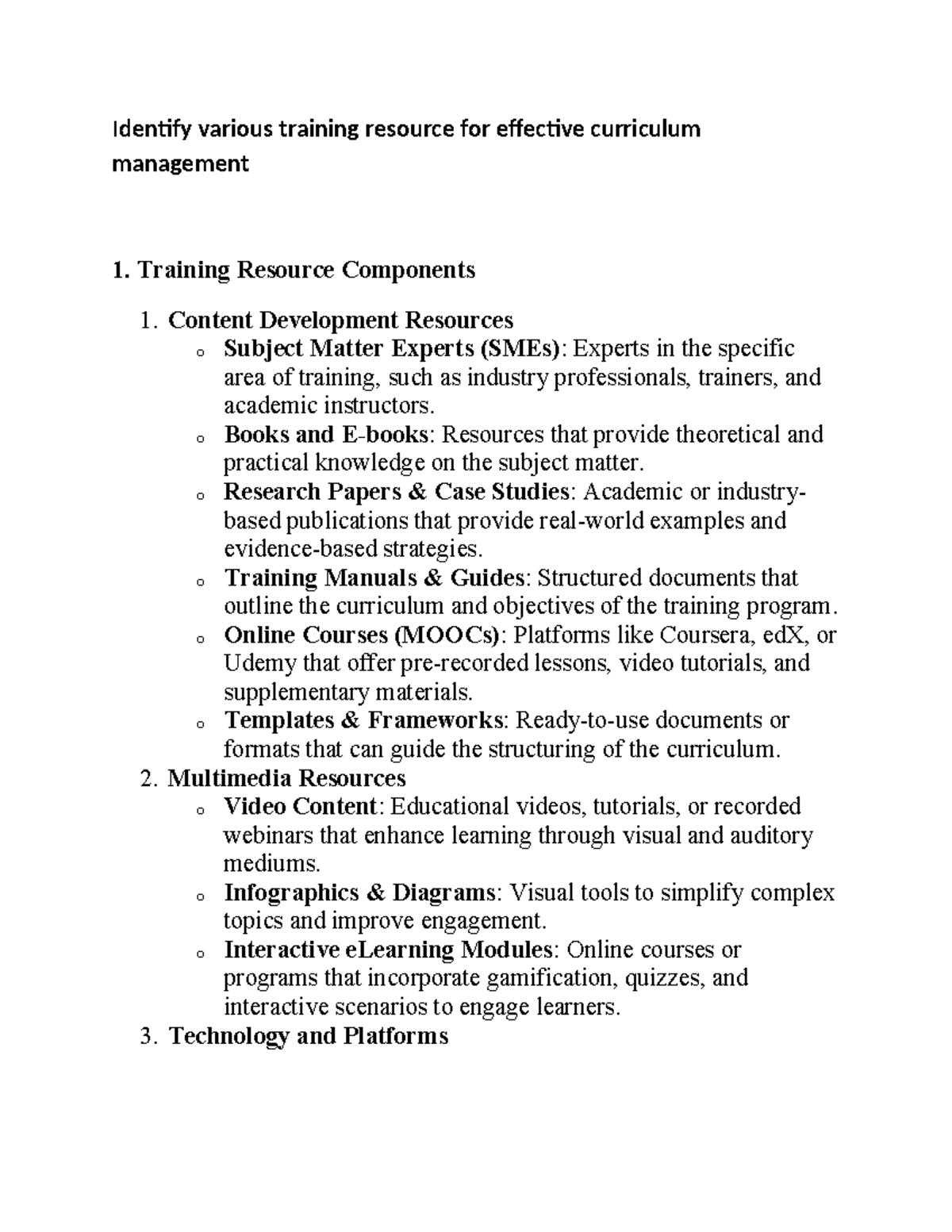 Training Resource Development Notes for Effective Curriculum - Studocu