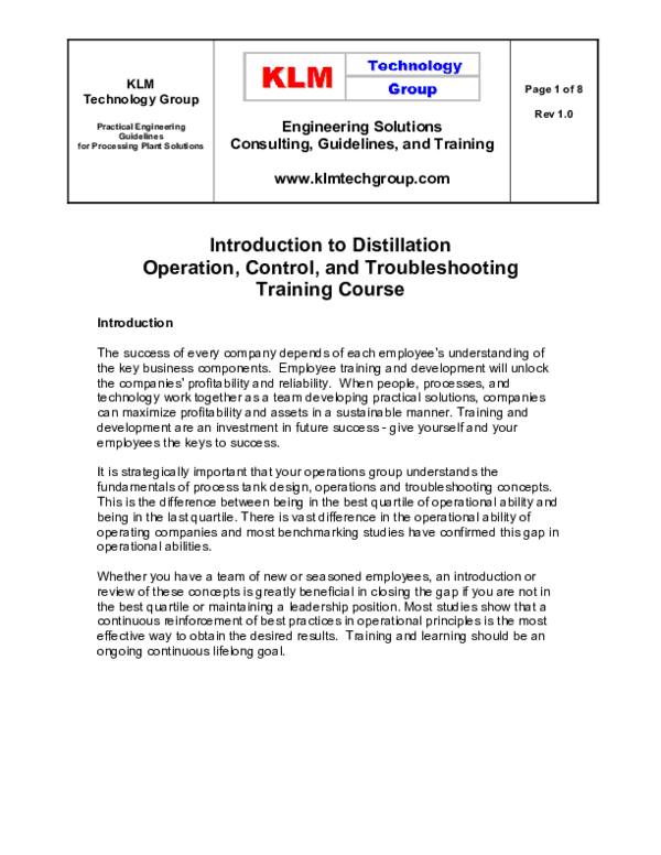 (PDF) Introduction to Distillation Operation, Control, and ...