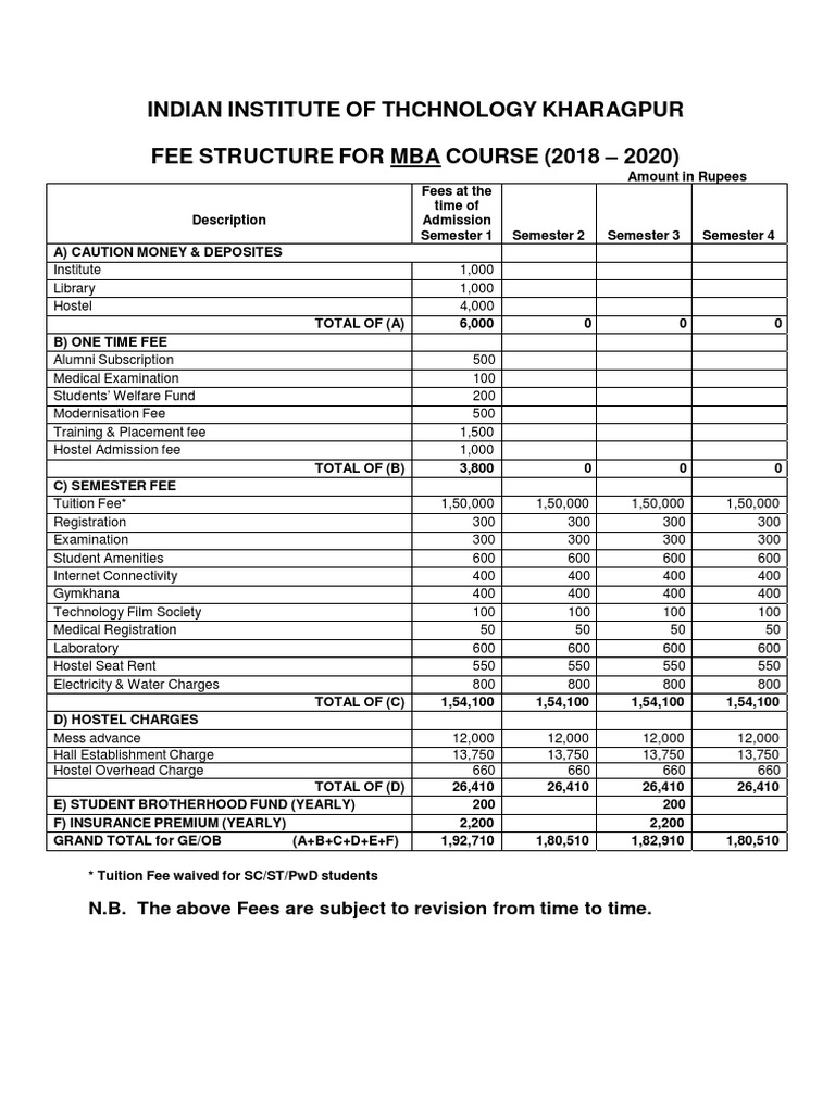 Fees Structure For MBA Course 2018-2020 | PDF | Fee | Business