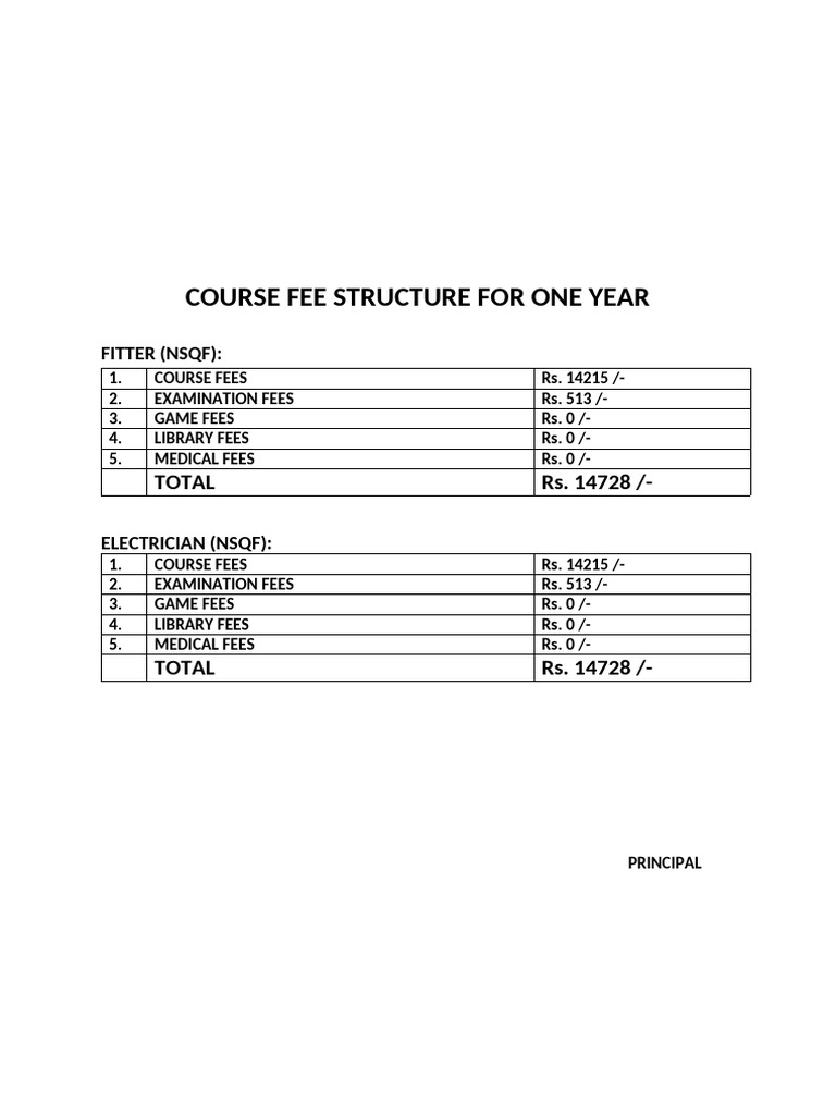Course Fee Structure for One Year | PDF