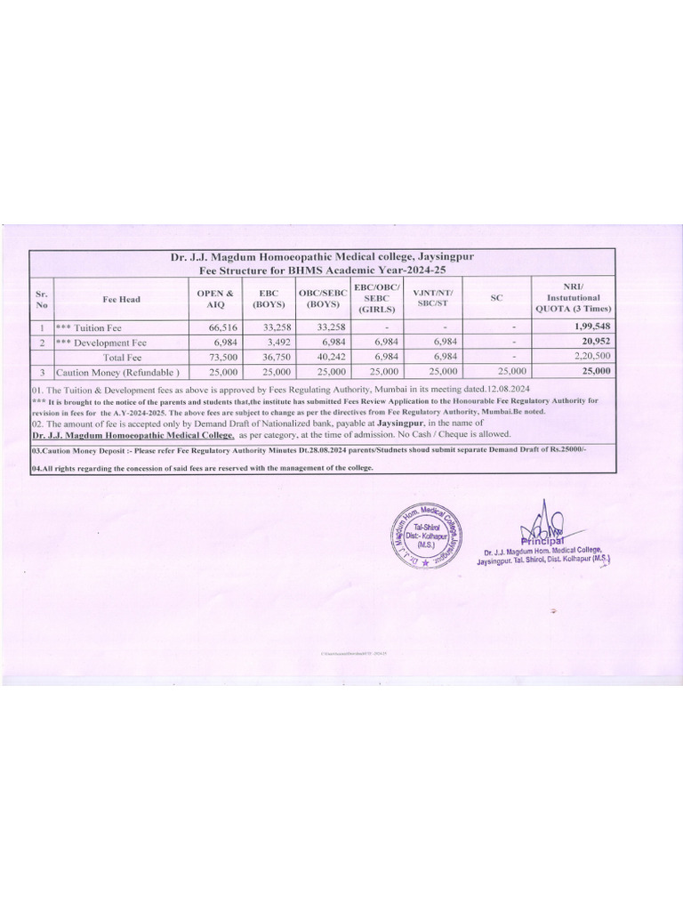 BHMS Course Fee Structure 2024 25 | PDF