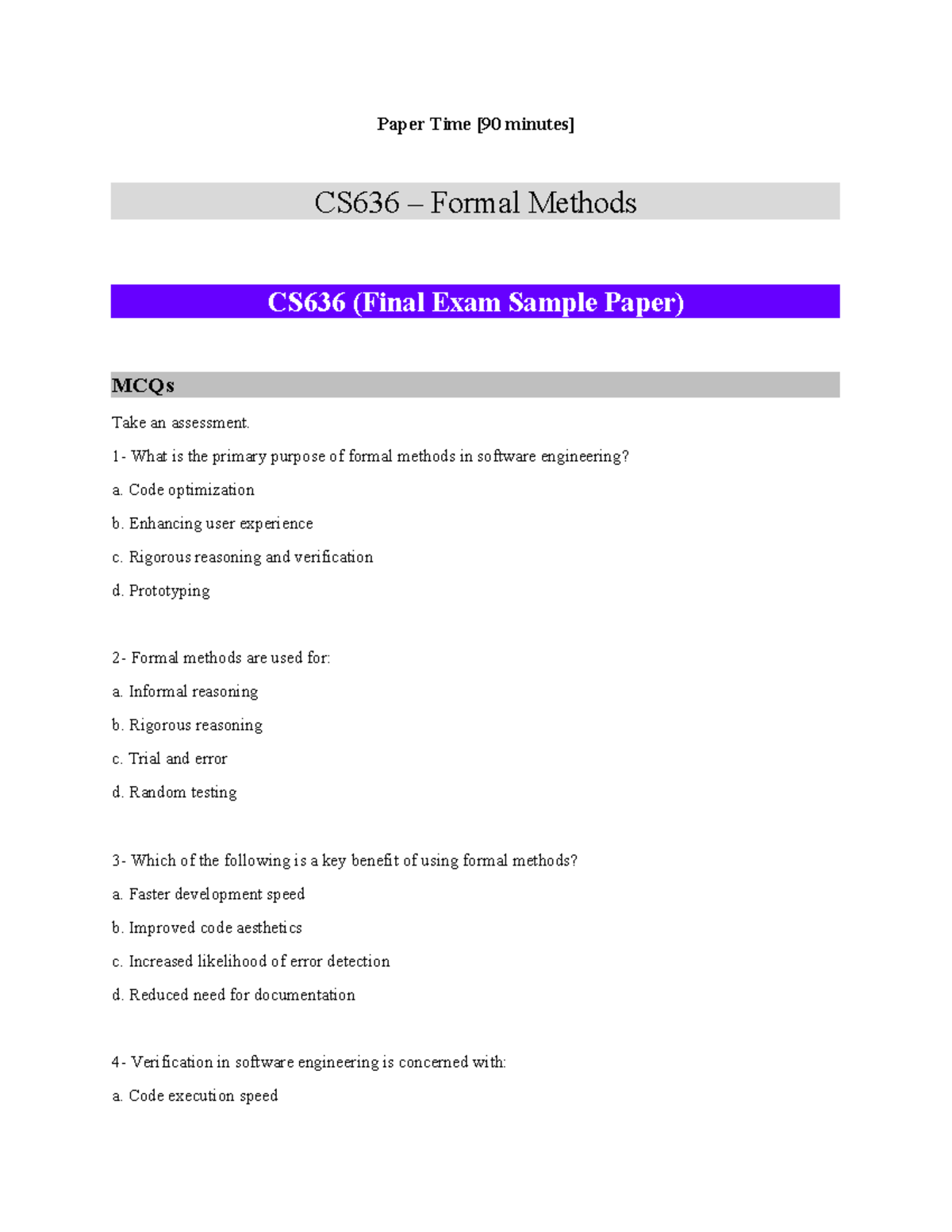 CS636 (Sample Final Exam on Formal Methods & Software Verification ...
