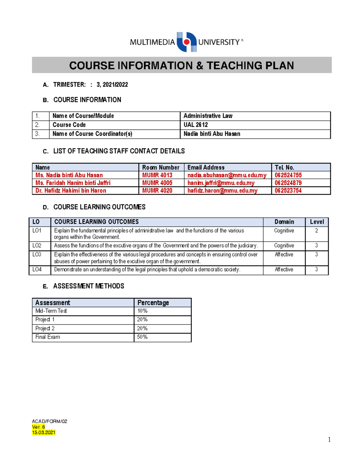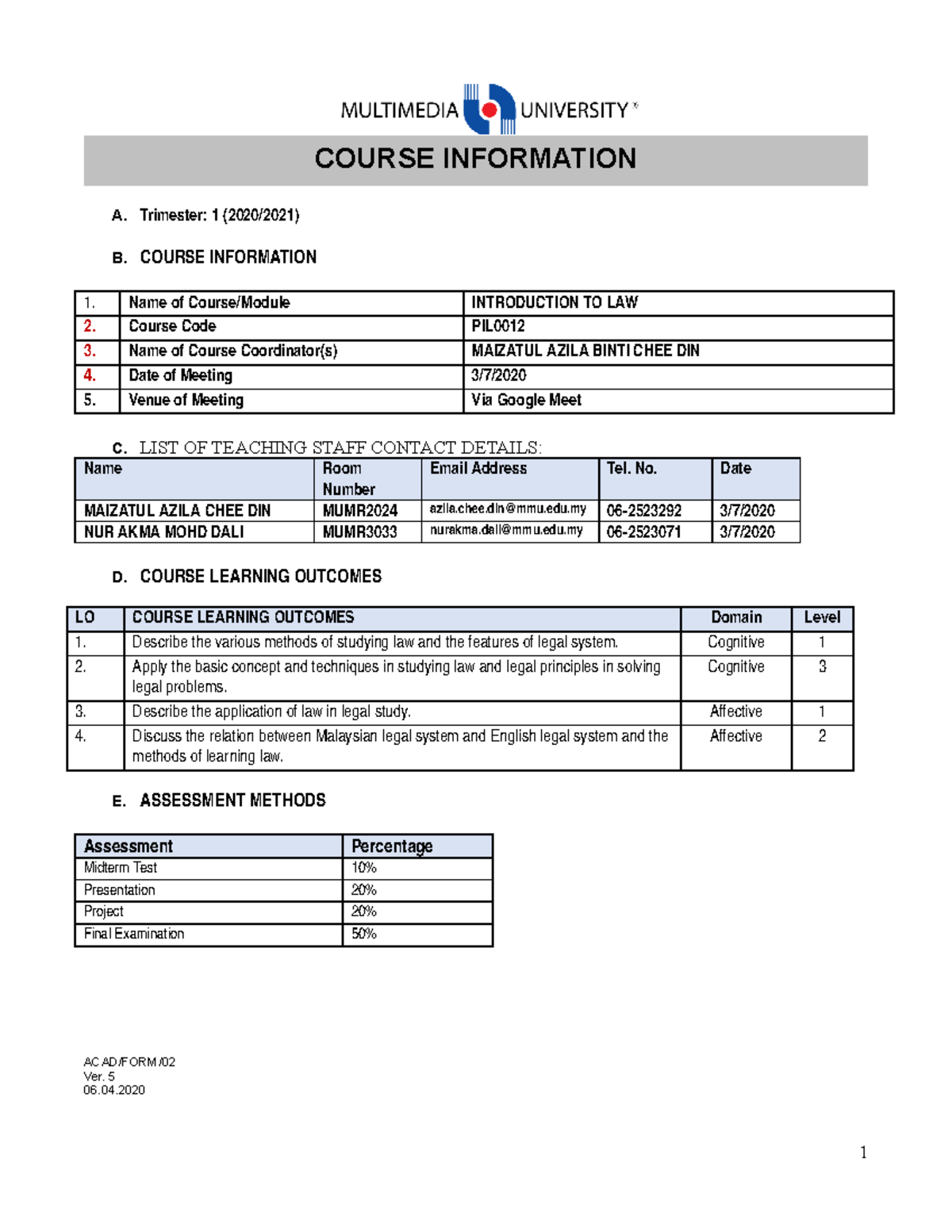 Course Information Ver5 - A. Trimester: 1 (2020/2021) B. COURSE ...