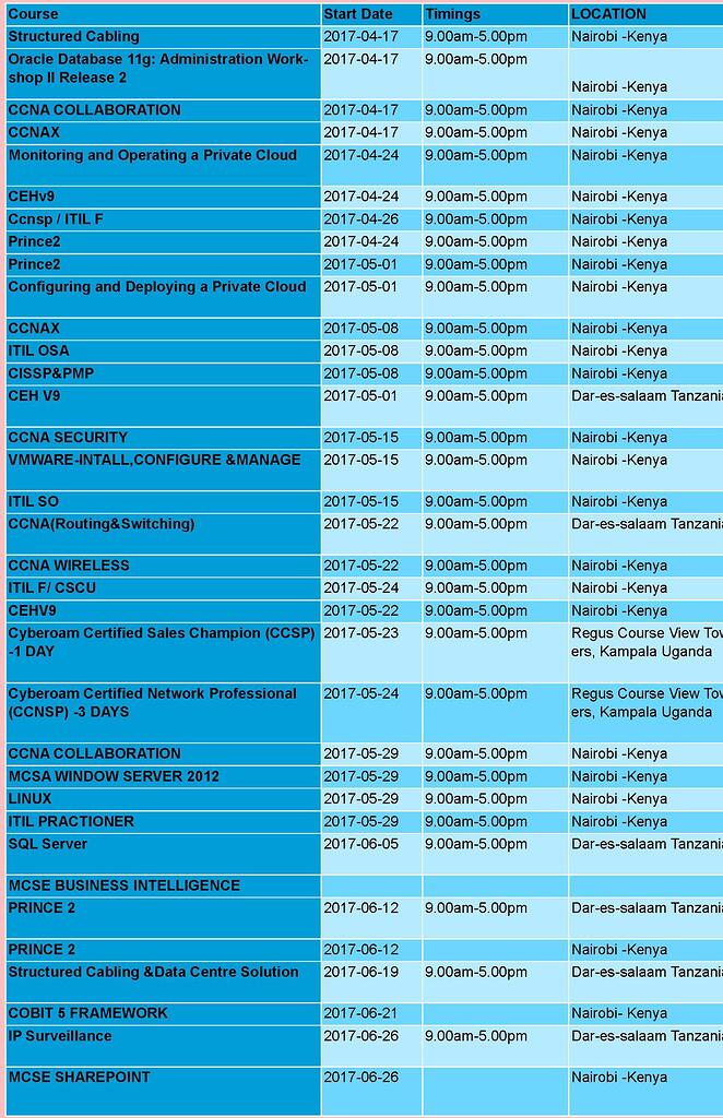 Upcoming itinerary for training - Courses and Trainings - South Sudan ...