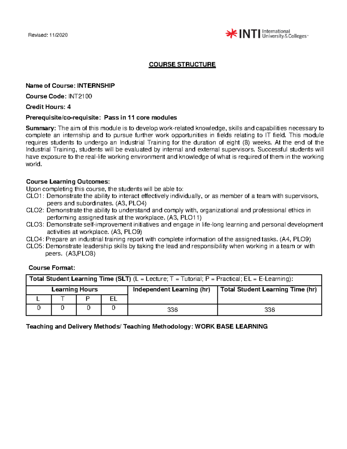 INT2100 updated 2011 20 - Revised: 11/ COURSE STRUCTURE Name of Course ...