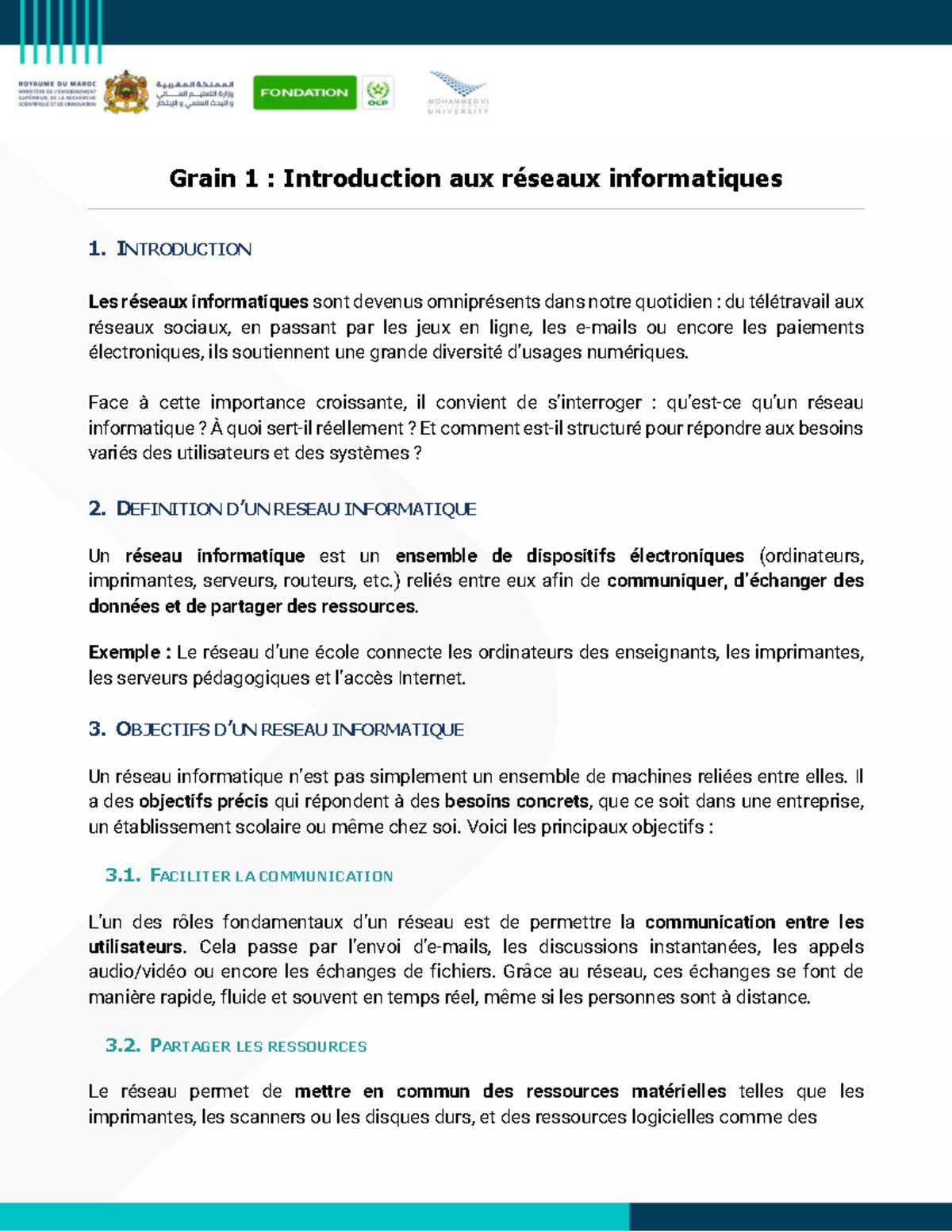 Grain 1 : Introduction aux Réseaux Informatiques et leurs Avantages ...