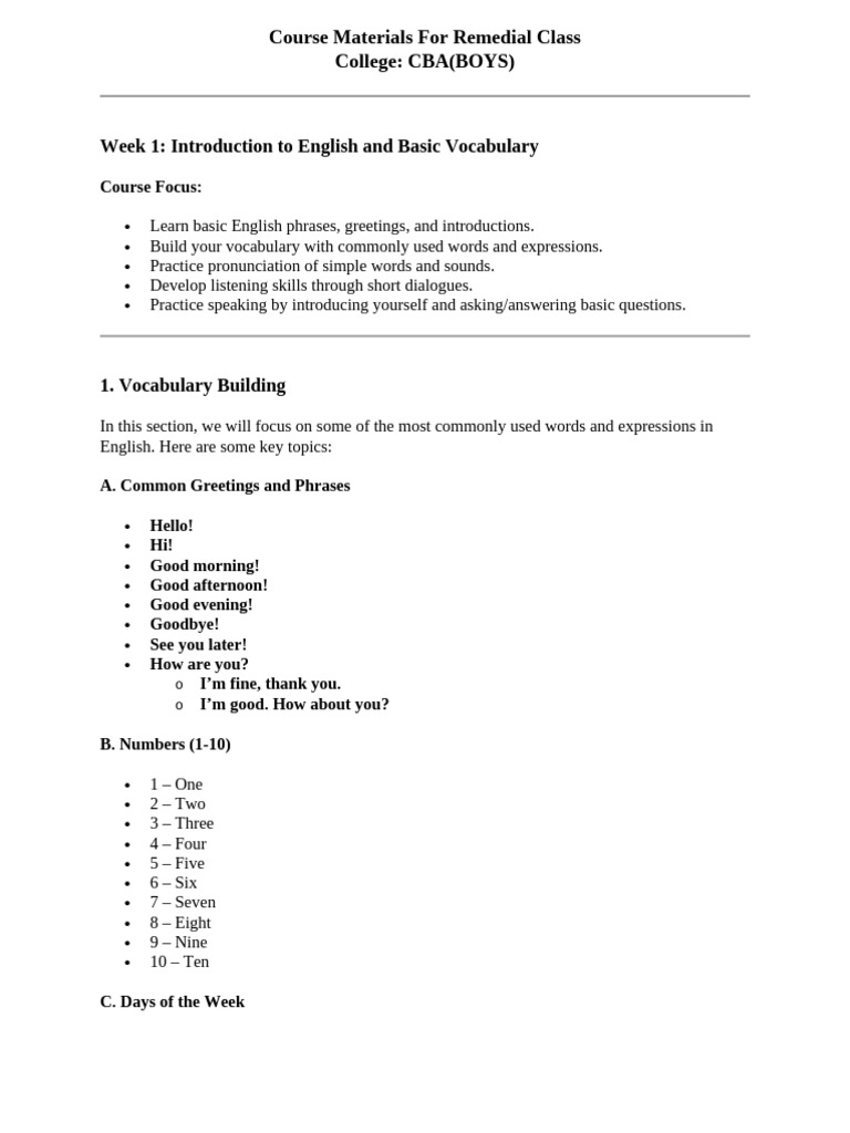Remedial English Course Materials | PDF | Reading Comprehension ...
