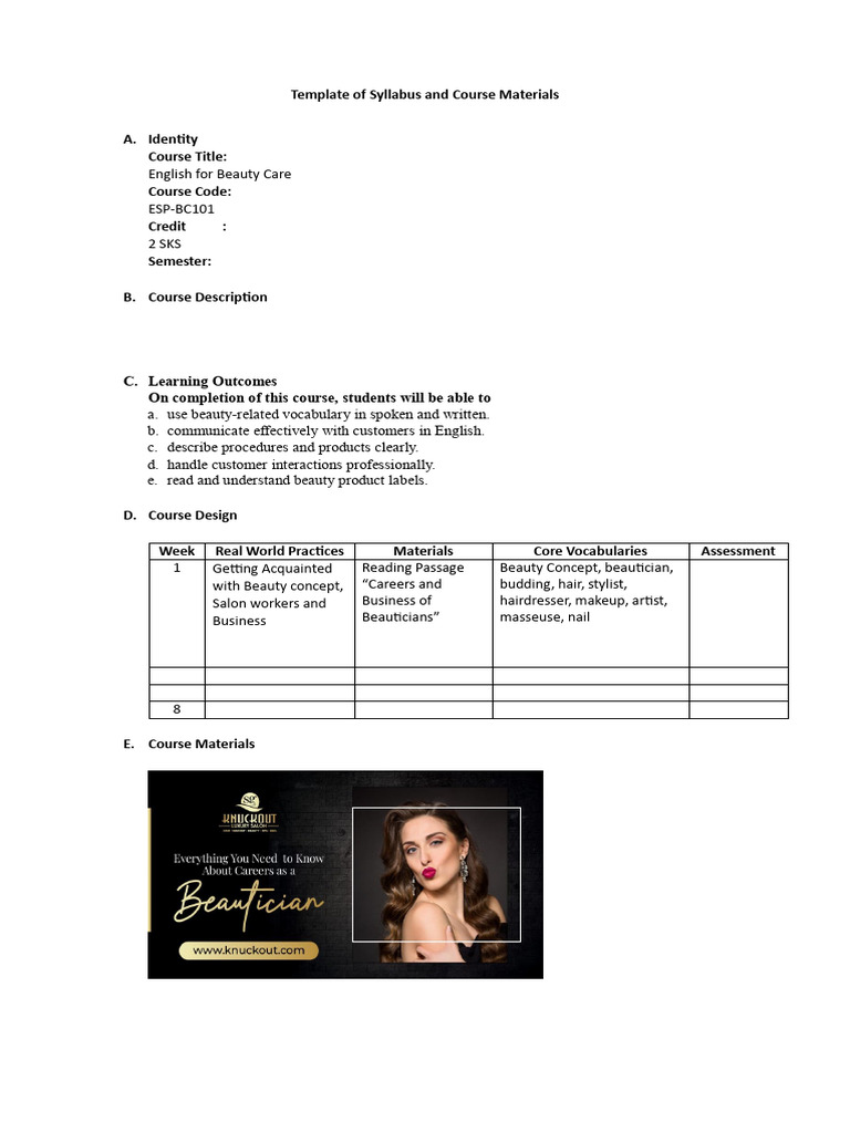 English for Beauty Care Course Syllabus | PDF | Skill | Learning
