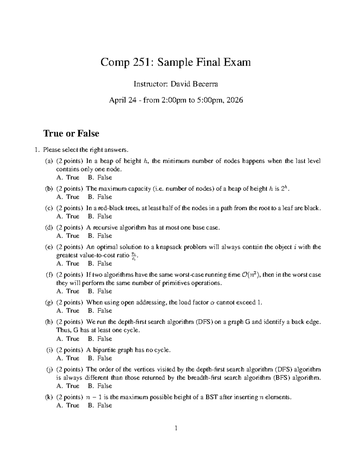 COMP 251: Sample Final Exam Review for Winter 2026 - Studocu
