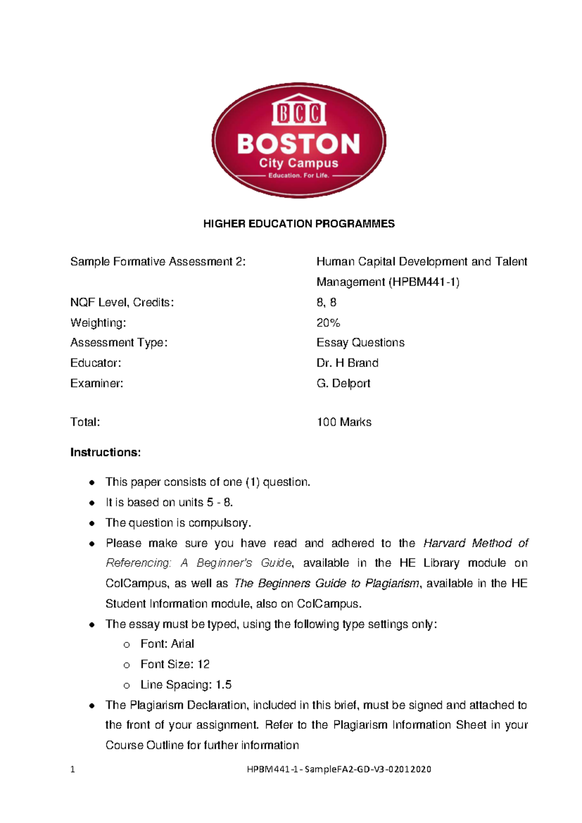 HPBM441 Sample FA 2: Talent Management & Onboarding Essay - Studocu