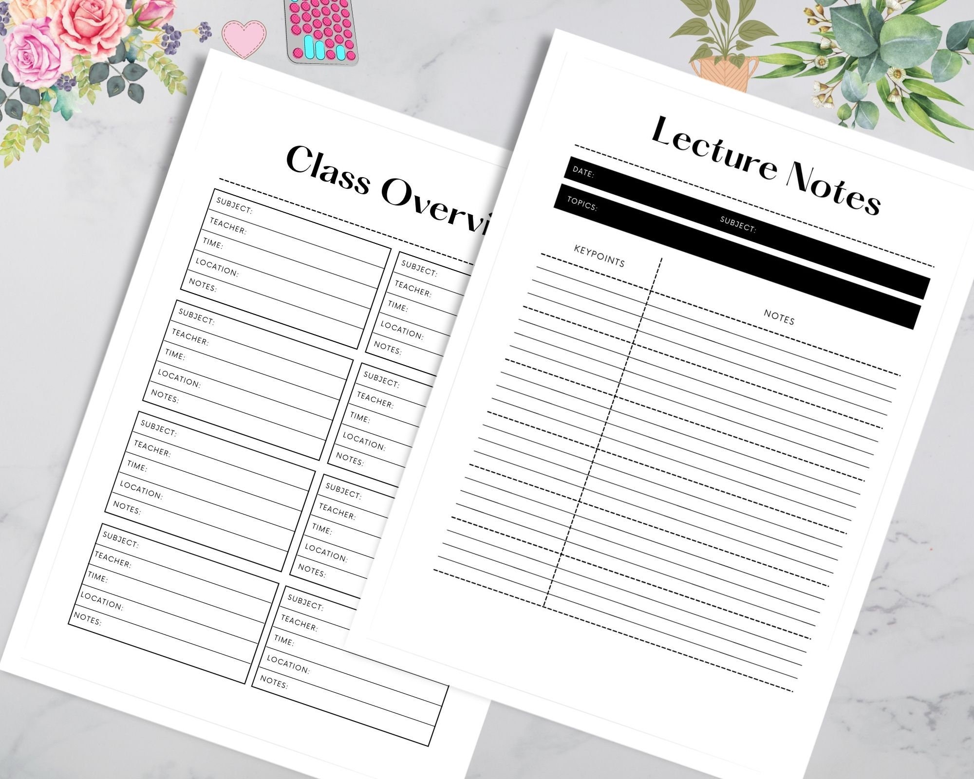 Printable Online Class Notes Template: Lecture Notes, Study Planner ...