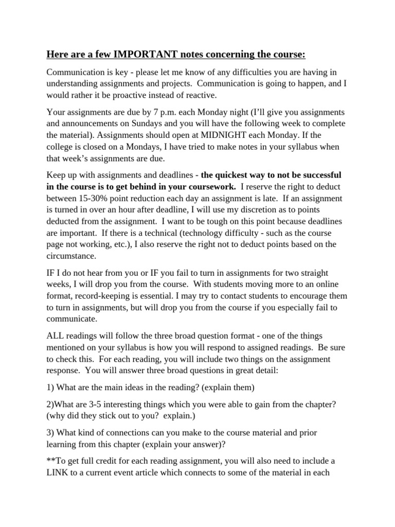 Printable Class Overview and Lecture Notes | Easy-to-print Class ...
