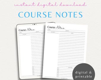 Digital Download Class Notes Template for Studying - Etsy