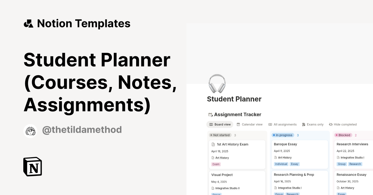 Student Planner (Courses, Notes, Assignments) Template by The Tilda ...