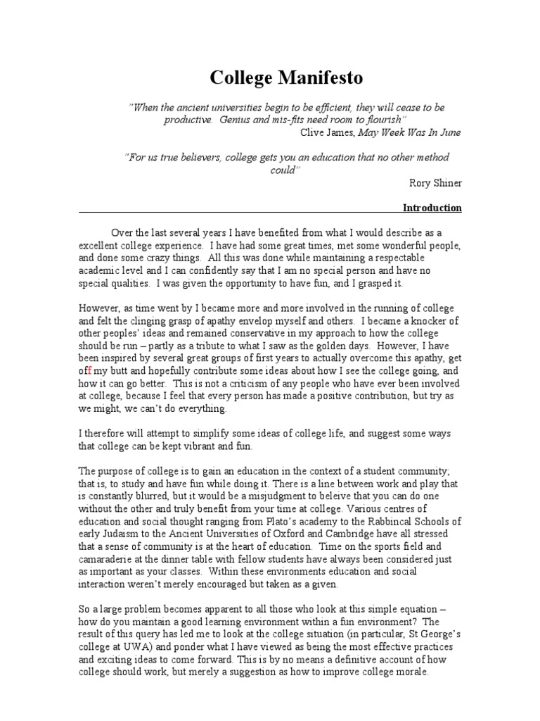Manifesto Examples For Students