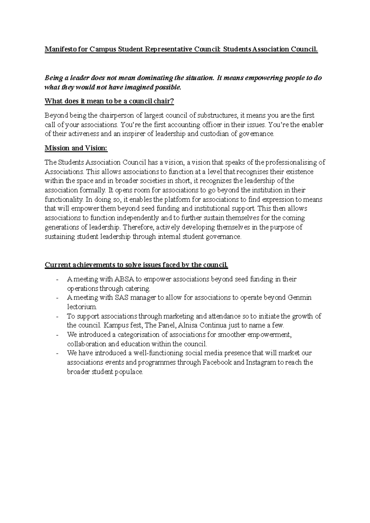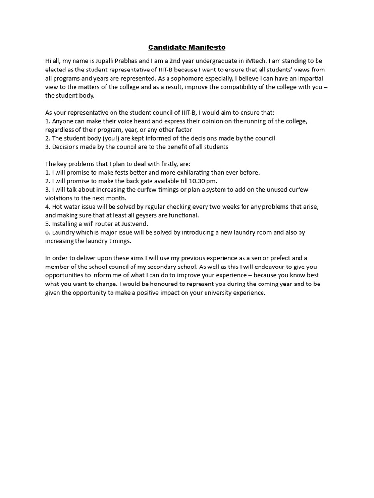 Campaign Manifesto - Student council rep | PDF