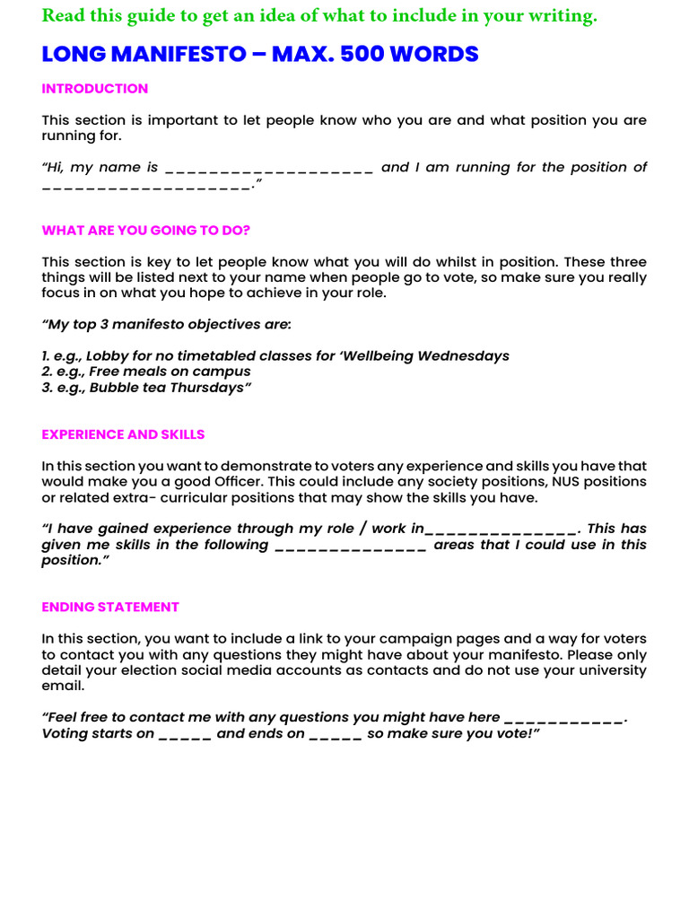 Student Election Manifesto Guide | PDF | Leadership