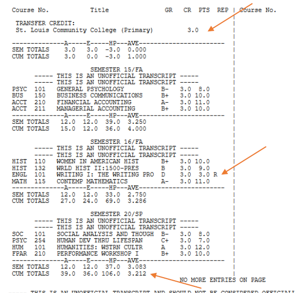 Self-Reported Academic Record: Transcript Examples | Office of Admissions