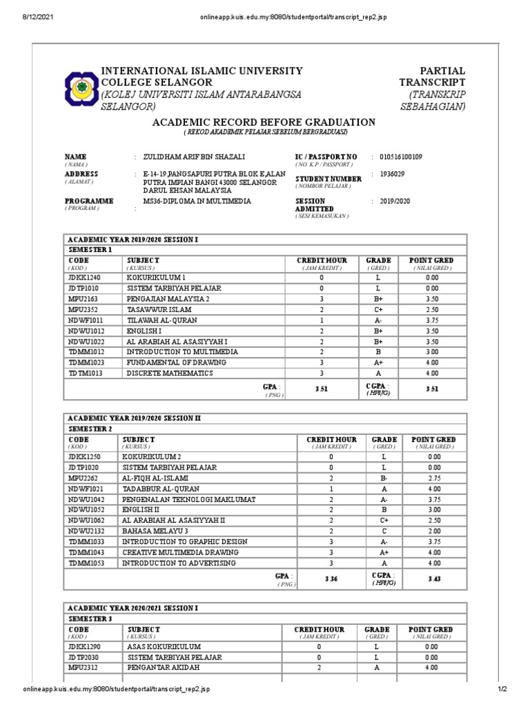 Academic Transcript 1 and 2 A | PDF