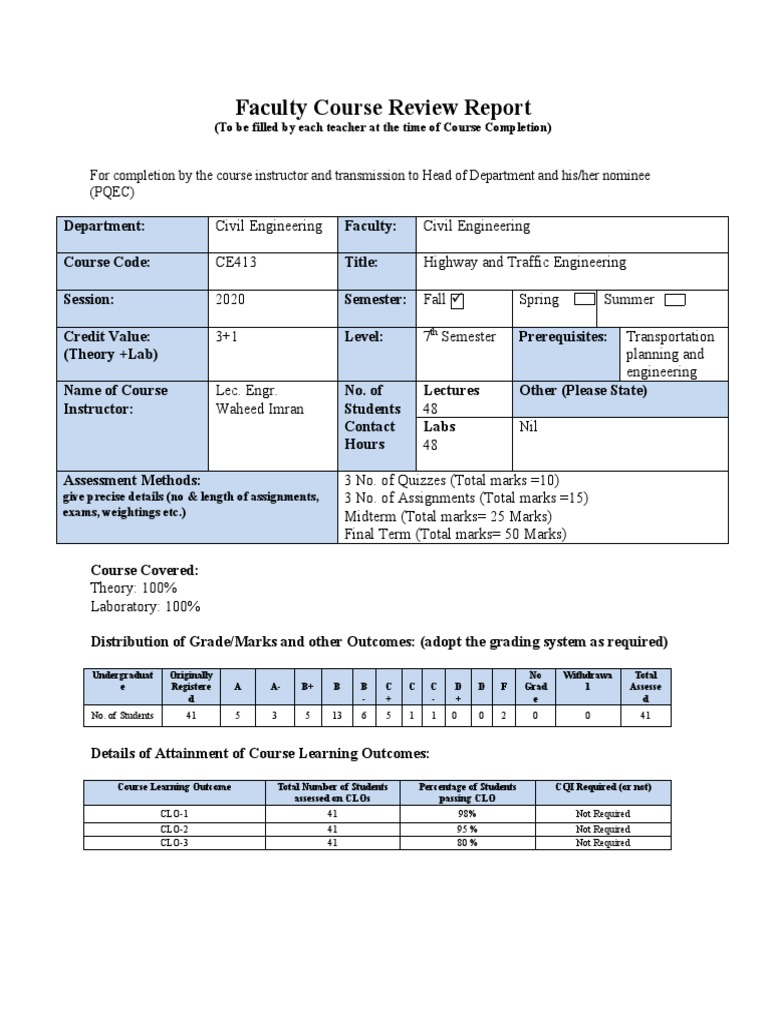 Zuhaib-Faculty Course Review Report | PDF | Course Evaluation ...