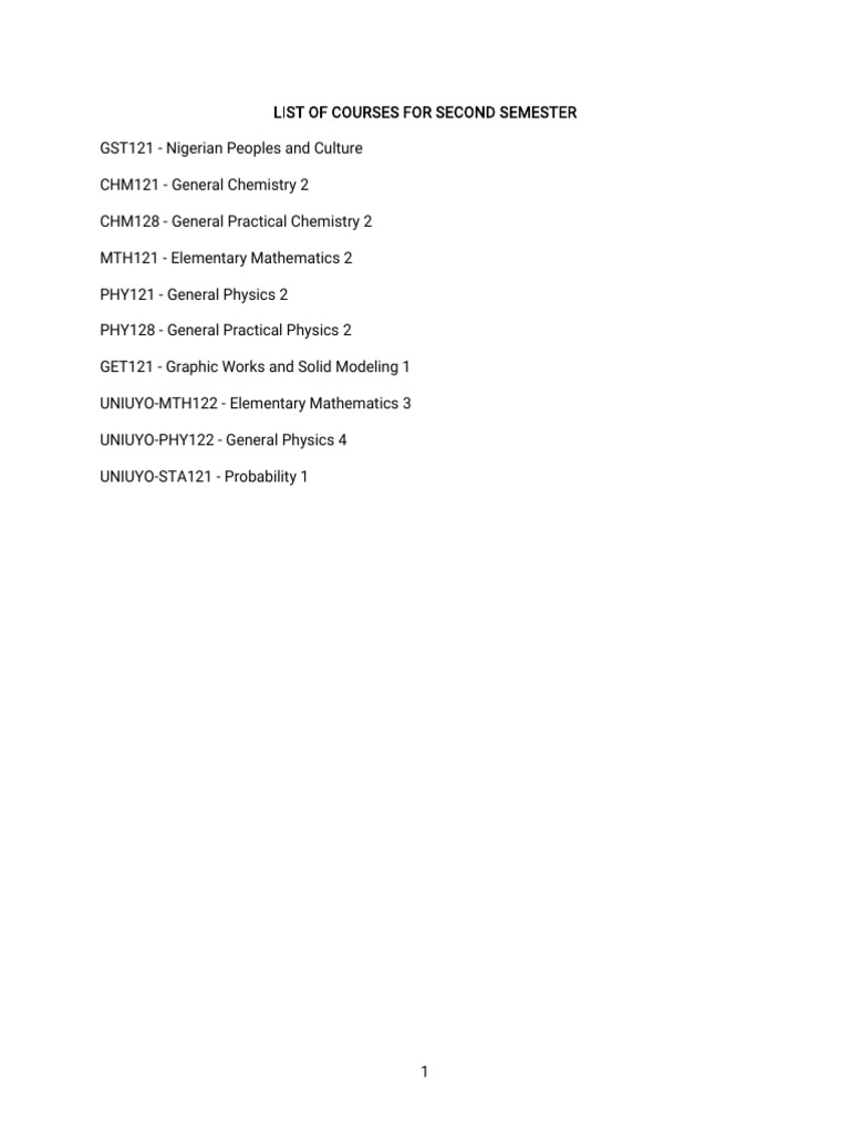 Course Outlines For Second Semester 2025 Session | PDF | Waves ...
