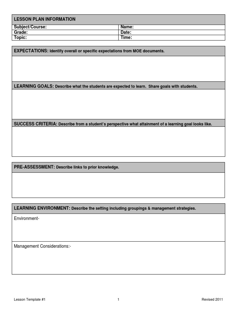 Sample Lesson Plan Template for Multiple and Single Subject | Course Hero