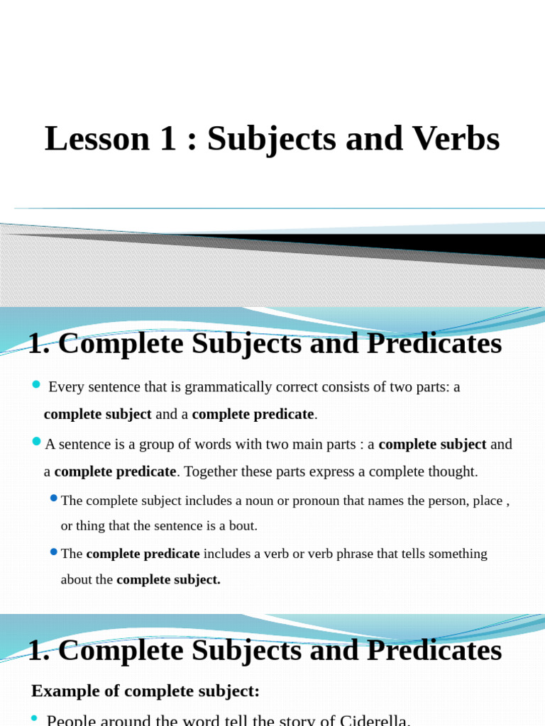 Lesson 1 Subjects and Verbs | PDF | Subject (Grammar) | Predicate (Grammar)