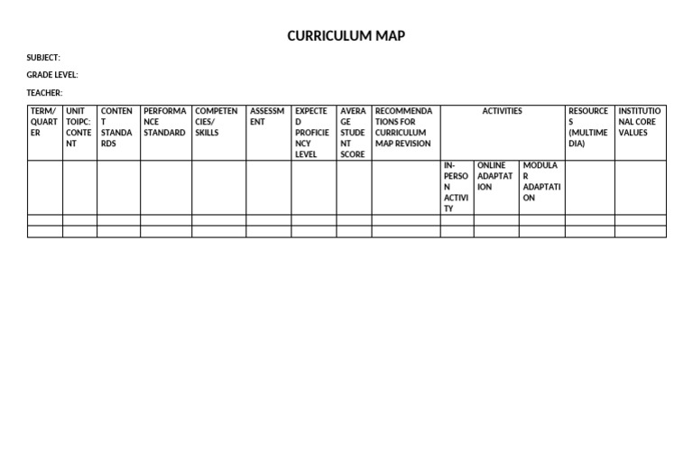 Course Curriculum Map Template