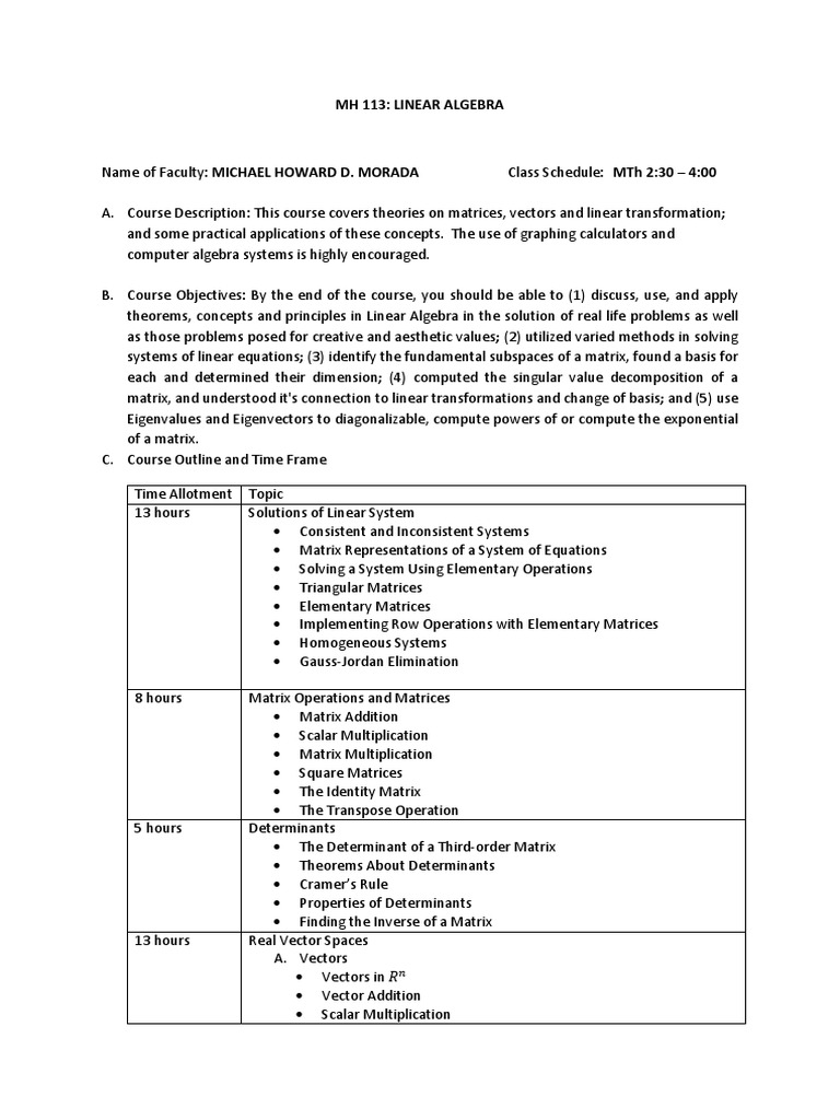 Course Syllabus | PDF | Matrix (Mathematics) | Linear Algebra