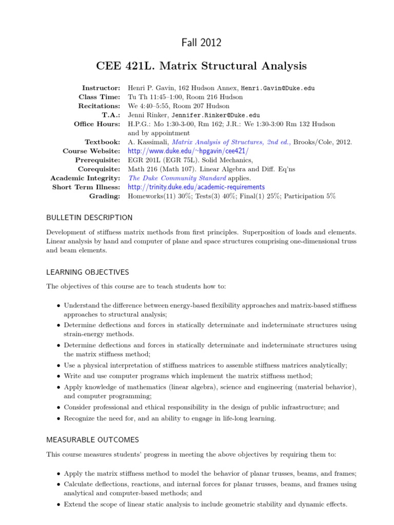 Matrix Structural Analysis Course Syllabus | PDF | Beam (Structure ...