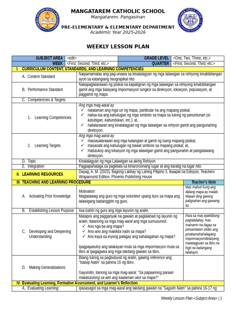 Weekly Lesson Plan - Full - Template | PDF | Reading Comprehension ...