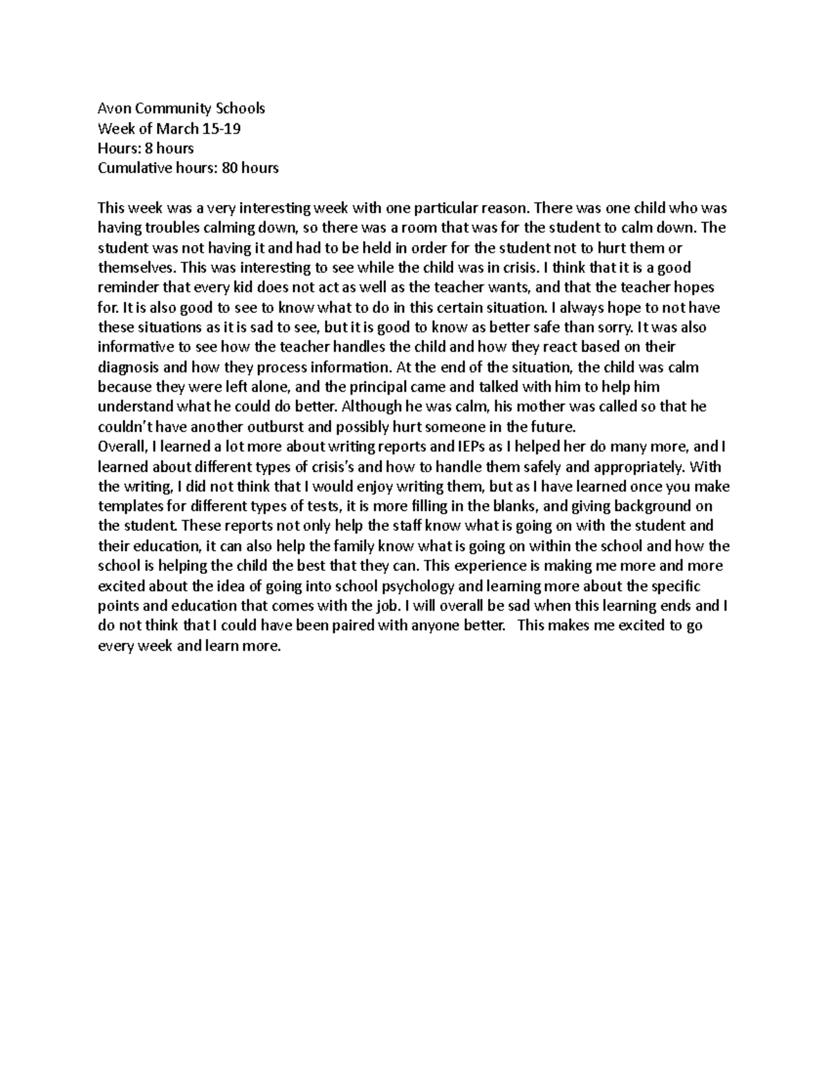 Journal 4 - Course work paper - Avon Community Schools Week of March 15 ...