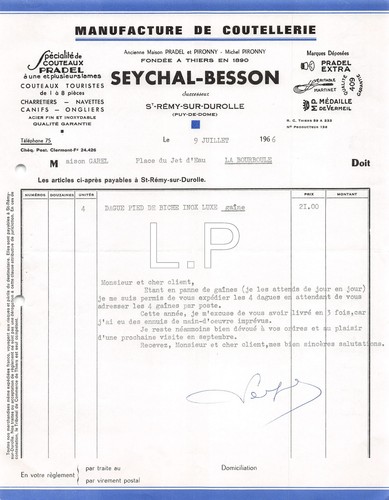 1966 MANUFACTURE DE COUTELLERIE SEYCHAL BESSON A SAINT REMY SUR DUROLLE ...