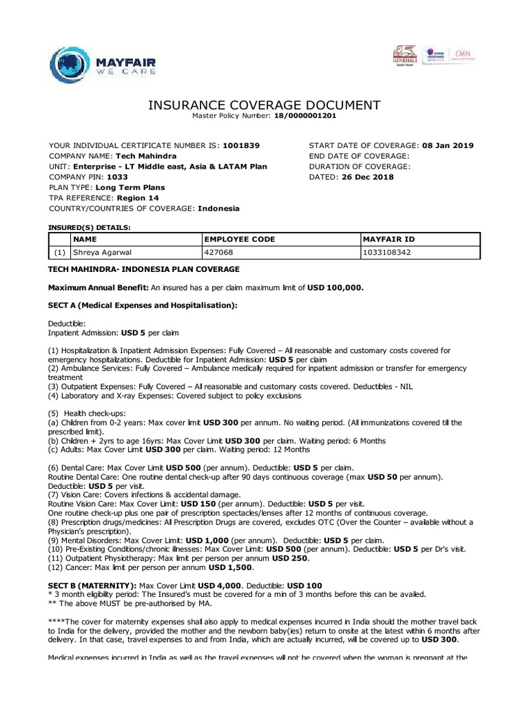 Insurance Coverage Notes - Insurance Coverage Premium Monthly payment ...