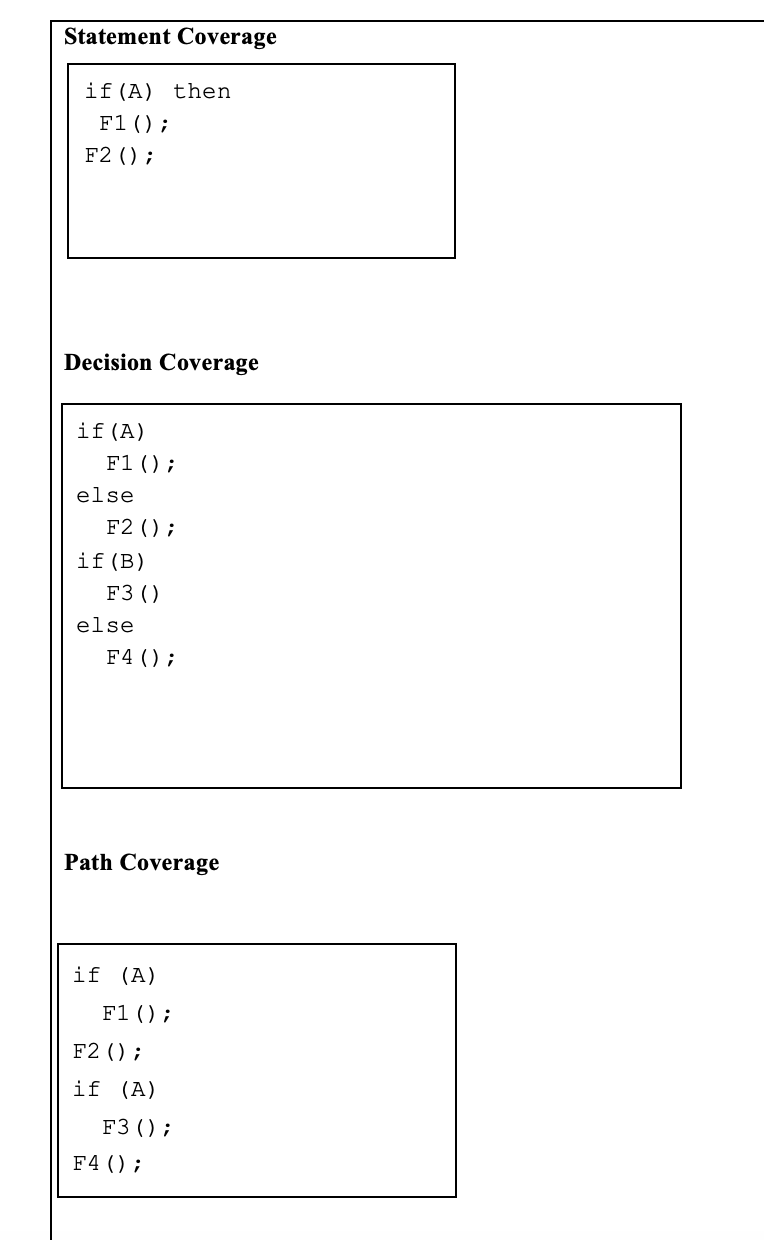Solved Statement Coverage if (A) then F1(); F2(); Decision | Chegg.com