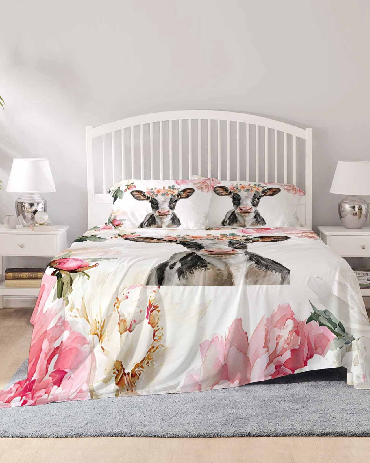 4 Piece King Sheet Set Pink Cow Sheets Set for King Size Bed ...
