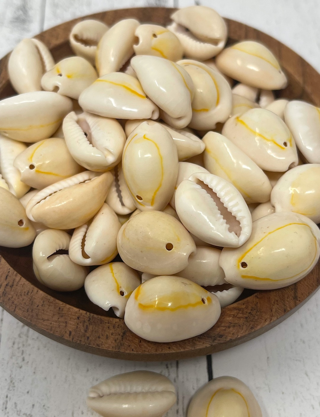 Natural Cowrie Shells, Drilled Shell Beads, Soft White With Yellow ...