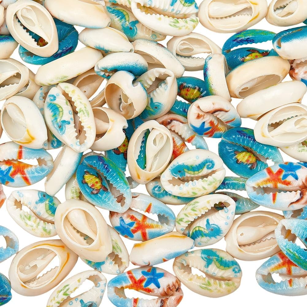 1 Box 80PCS Colored Natural Cowrie Shell Marine Life Starfish Printed ...