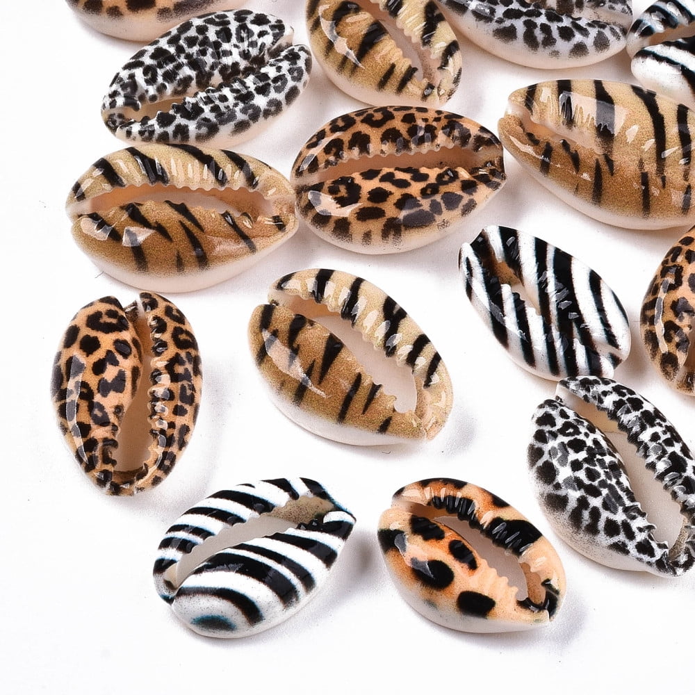 50pc Printed Natural Cowrie Shell Beads No Hole/Undrilled with Animal ...